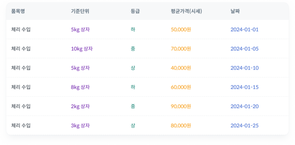 이를 통해 농산물 최적 판매 시기를 결정하고 수익성을 향상 시킬 수 있습니다.